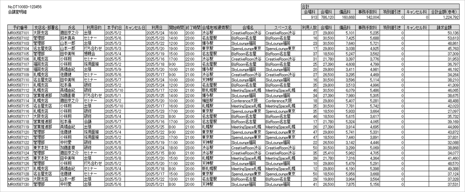 ご利用会議室の情報は、ご利用明細に反映!